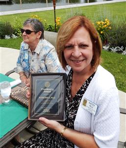 Kathy Pelz, Immediate Past President, was selected by outgoing President Thomas Webb as the recipient of the President's Award. President Webb commended her for exceptional service to the club. The award was given as a part of the Installation of the new president, Brian Thoma, at a picnic meeting of the club on the terrace of the McHenry Country Club, Thursday, June 26th, at 12:30 P.M.